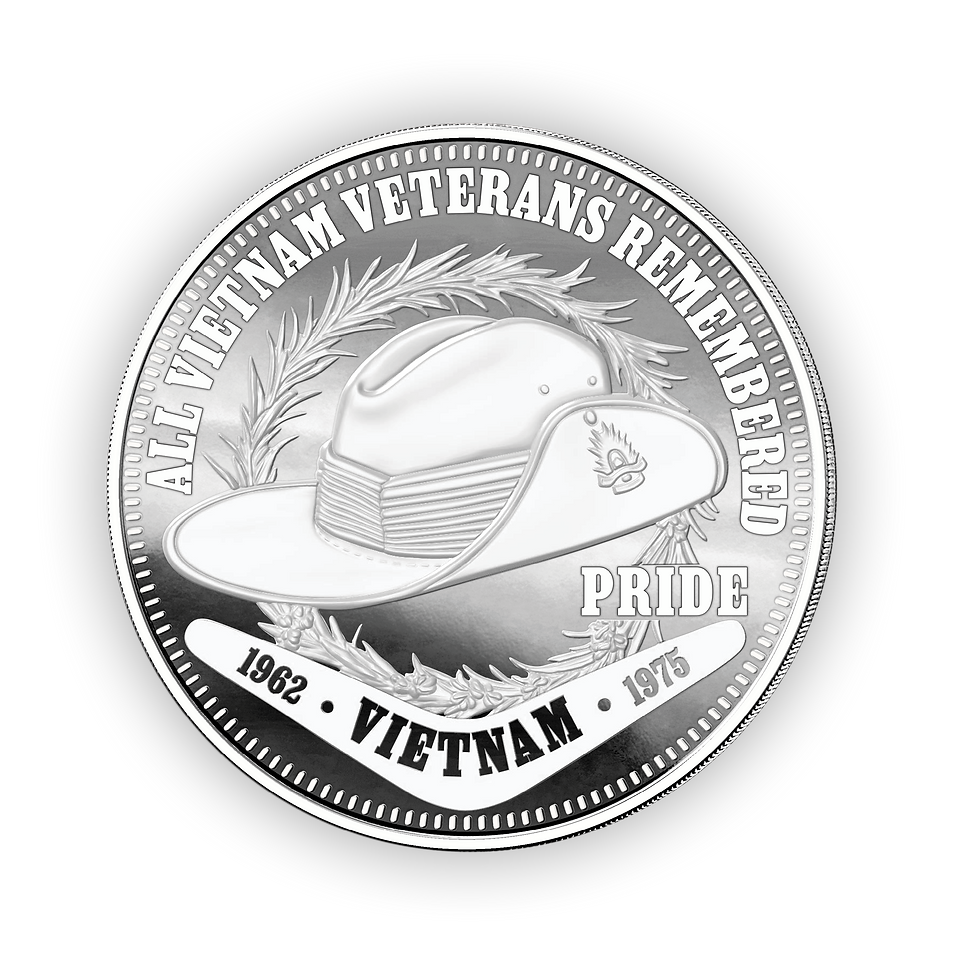 In all over 60,000 Australian defence force personnel - including ground troops, air force, navy, medical and ancillary personnel - served in Vietnam, 523 losing their lives as a result of the war and almost 2,400 being wounded. The Australian commitment to the Vietnam War consisted predominantly of army personnel, but significant numbers of air force, navy personnel and civilians also took part. As we commemorate five decades since those tumultuous times, those who served in Vietnam hold a special place in our nation’s history - suffering as much at home as they did on the battlefield. Reviled, spat at and shunned on their return, Australia proved to be just as deadly as the jungle of Southeast Asia. Still, they never wavered and with the support of family and each other, they stood proud. Now recognised as some of the bravest service personnel in our military history, The Bradford Mint is proud to honour all veterans who served – male and female, military and medical, artillery and ancillary – and remember their selfless service and sacrifice with this meticulously crafted, fully etched, Select Set of pure silver commemorative coins – each recognising a particular trait or characteristic of those who fought in our stead.​